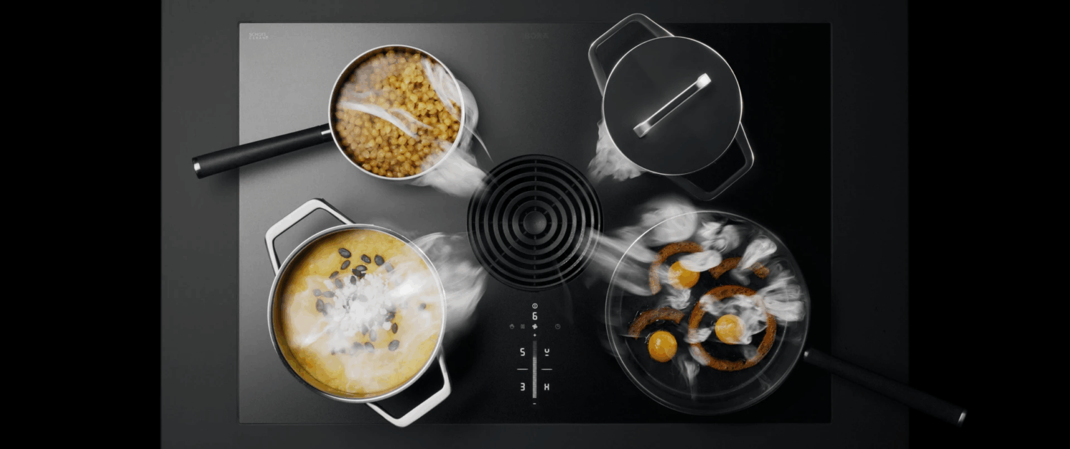 BORA bänkfläktar med downdraft är en serie revolutionerande köksfläktar som drar ner ångan direkt från hällen.